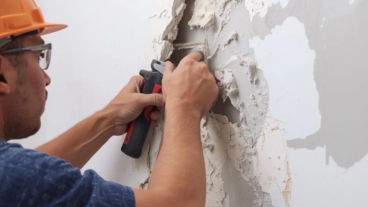 Loose, crumbling or water-damaged drywall is cut out instead of coated over. We remove only the bad material, protect nearby areas and create a clean opening so the new patch bonds well and stays stable.