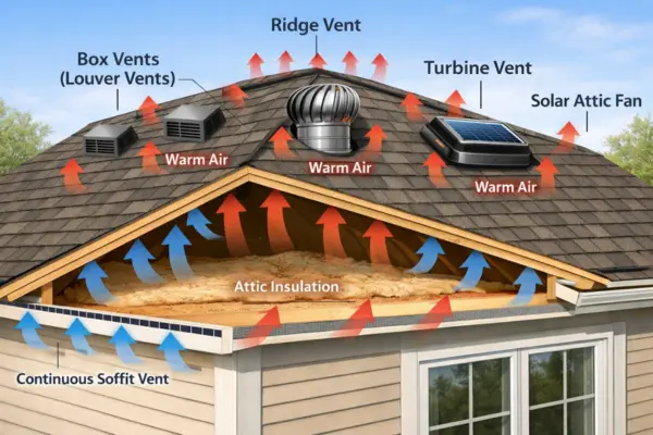 You can choose from several vent styles, but the most effective system uses a combination of ridge vents for exhaust and soffit vents for intake. Selecting the right type depends on your roof shape, your local climate, and the amount of airflow your attic requires.